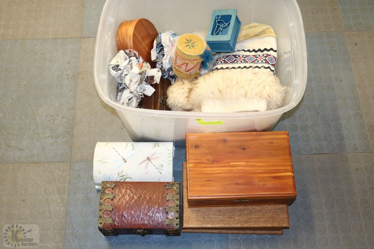 LARGE TOTE OF JEWELLERY BOXES & NATIVE TREASURES