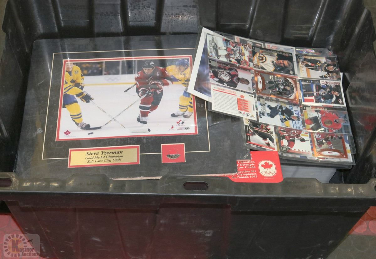 LARGE TOTE OF SPORTS MEMORABILIA AND COLLECTIBLES