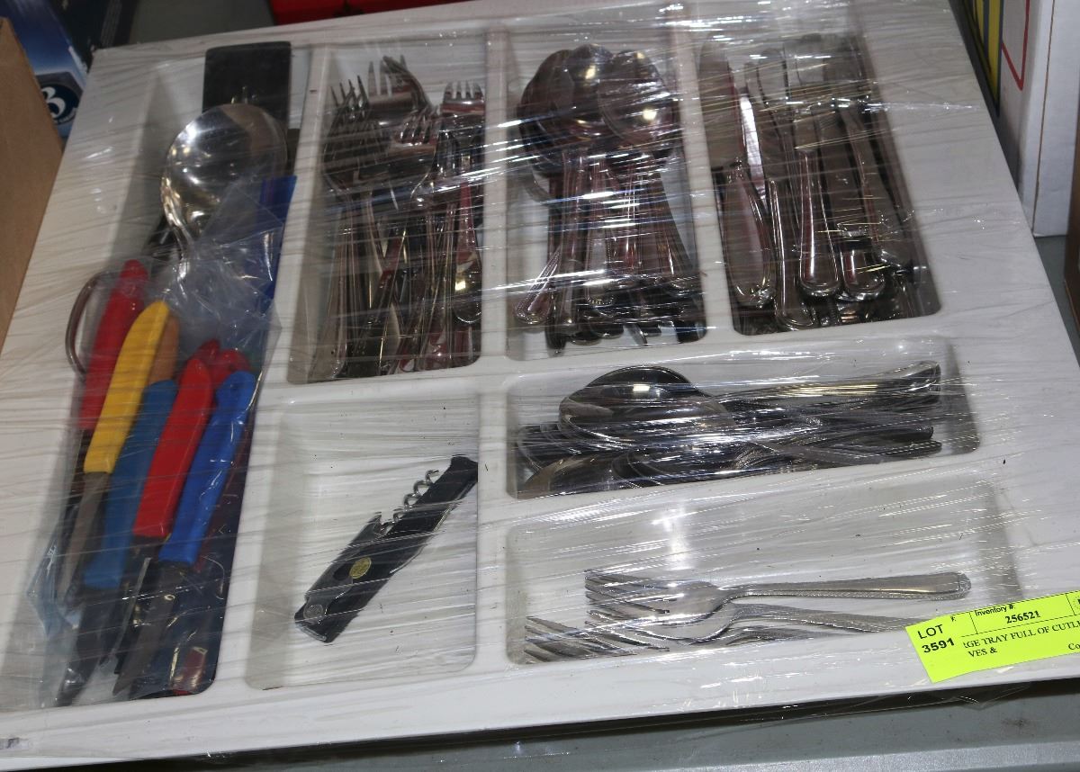 LARGE TRAY FULL OF CUTLERY - KNIVES &