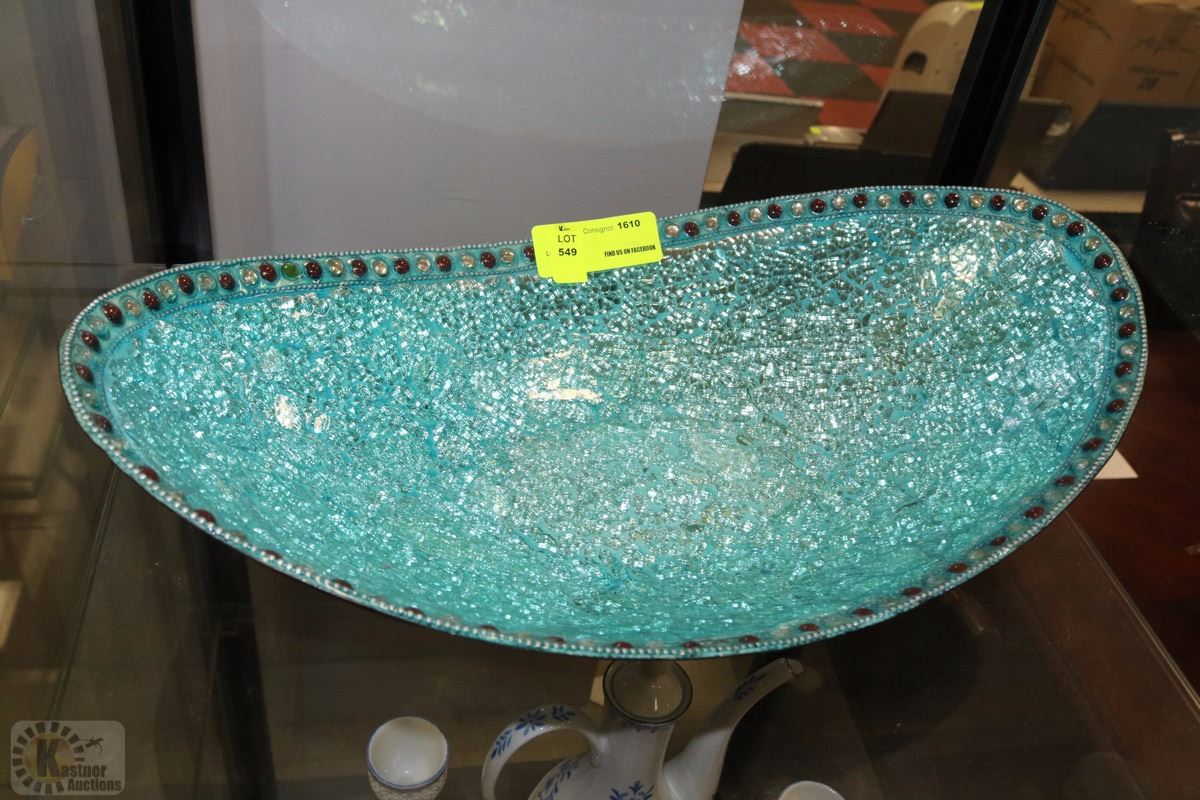 LARGE TURQUOISE COLOR ORNATE FRUIT BOWL