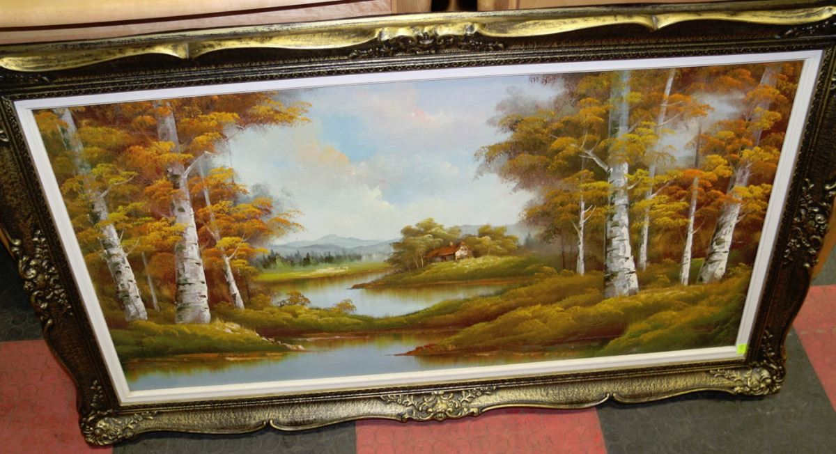 LARGE VINTAGE FRAMED SCENIC PAINTING