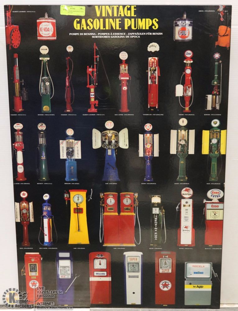 LARGE VINTAGE GASOLINE PUMPS PICTURE 36” X 24”