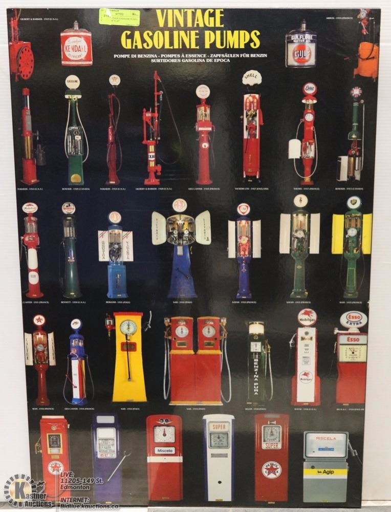 LARGE VINTAGE GASOLINE PUMPS PLAQUE 36” X 24”