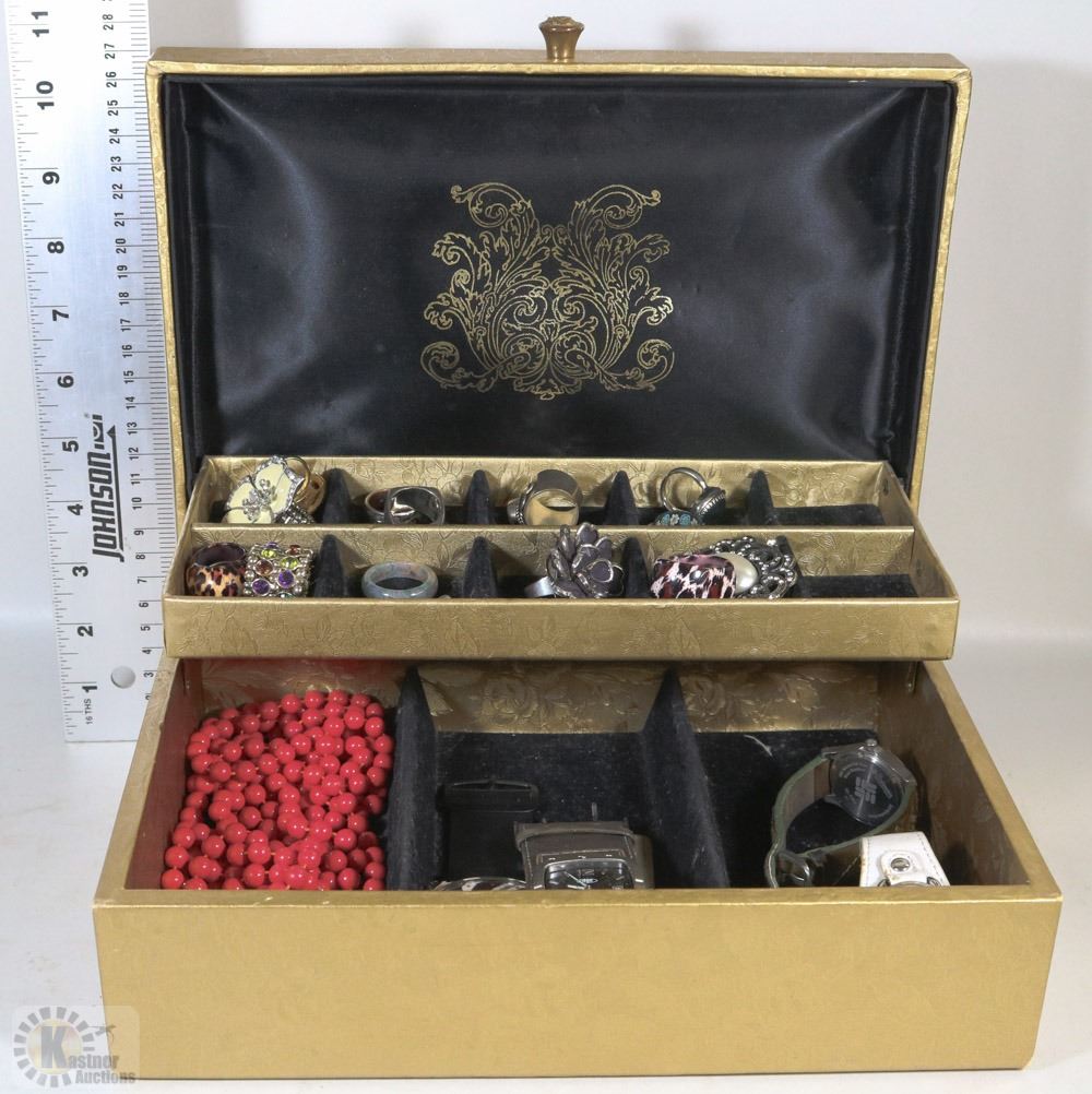 FILLED WITH ASSORTED JEWELRY AND WATCHES