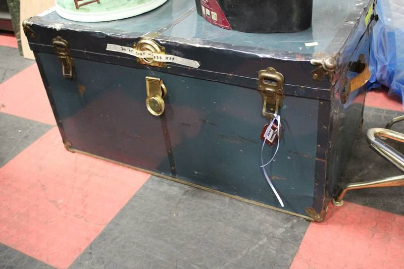 LARGE VINTAGE STORAGE TRUNK W/ DRAWER & KEYS