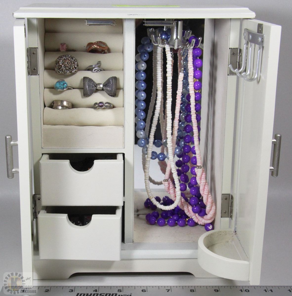 LARGE WHITE JEWELRY BOX WITH CONTENTS