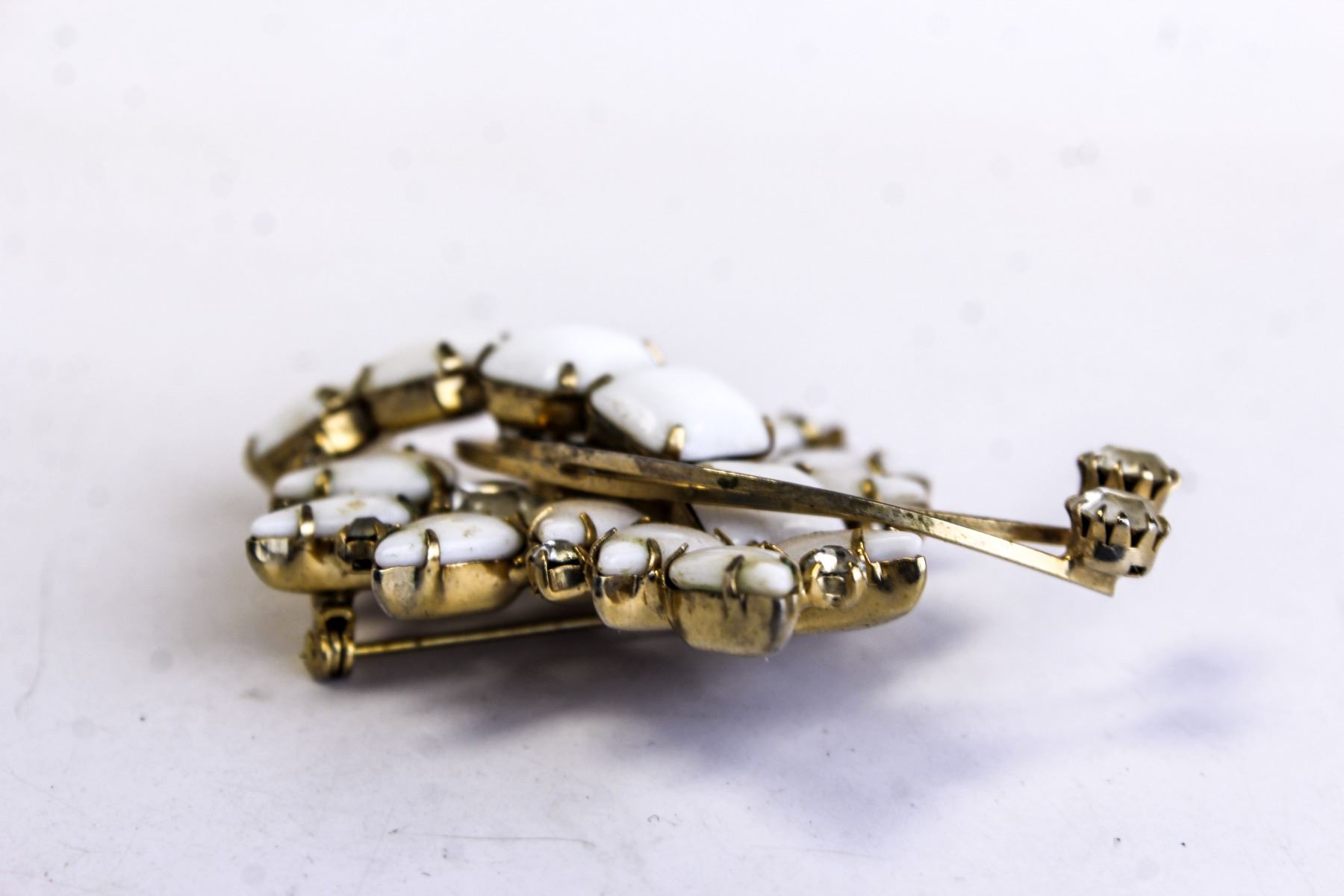 LARGE WHITE STONE COSTUME JEWELLERY BROOCH