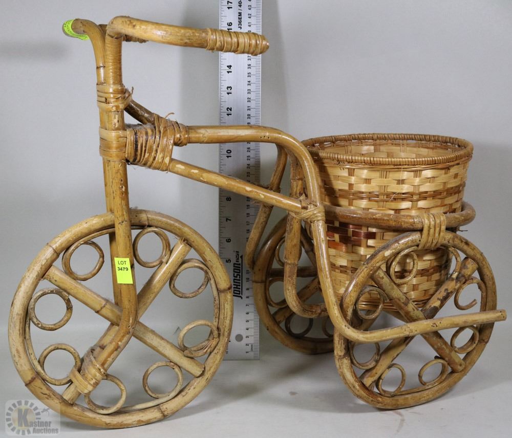 LARGE WICKER BICYCLE PLANT STAND 20"X15" TALL