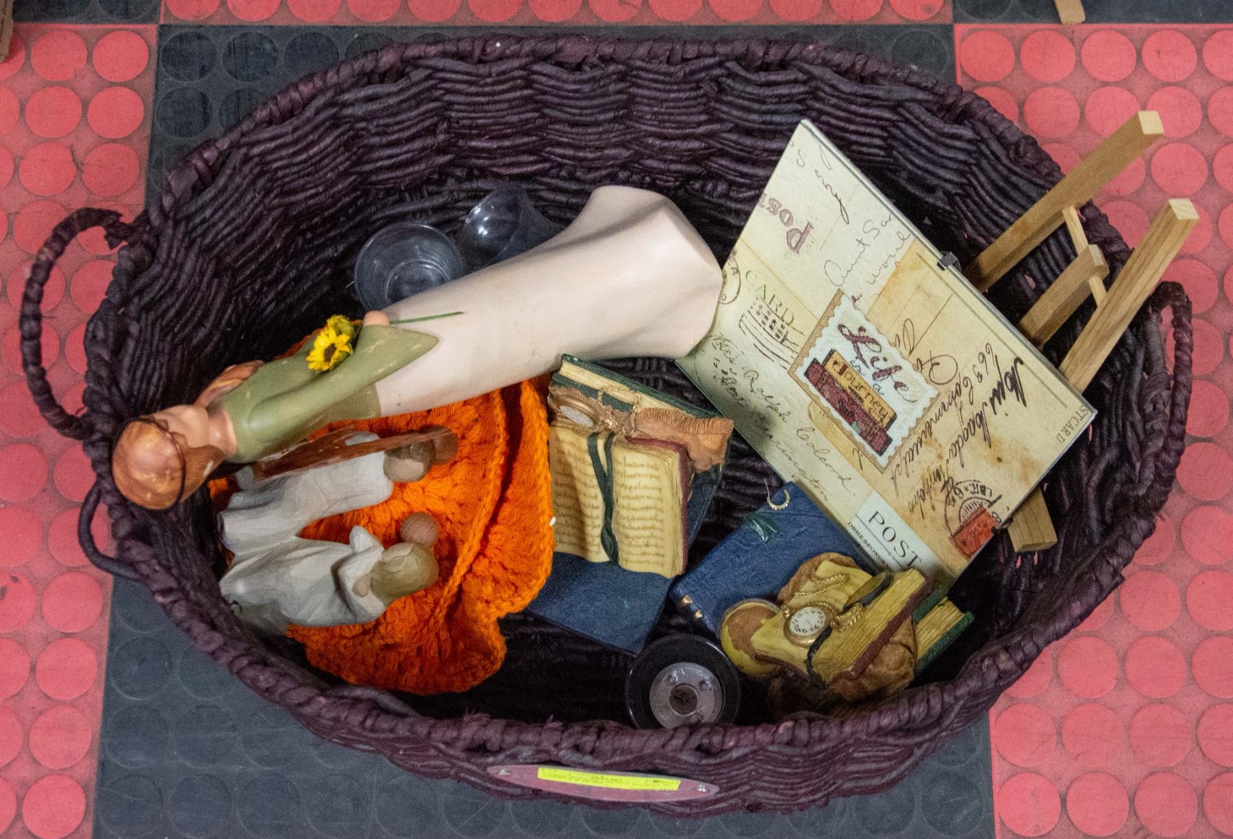 LARGE WICKER FAMILY BASKET W/ ANGELS & MORE