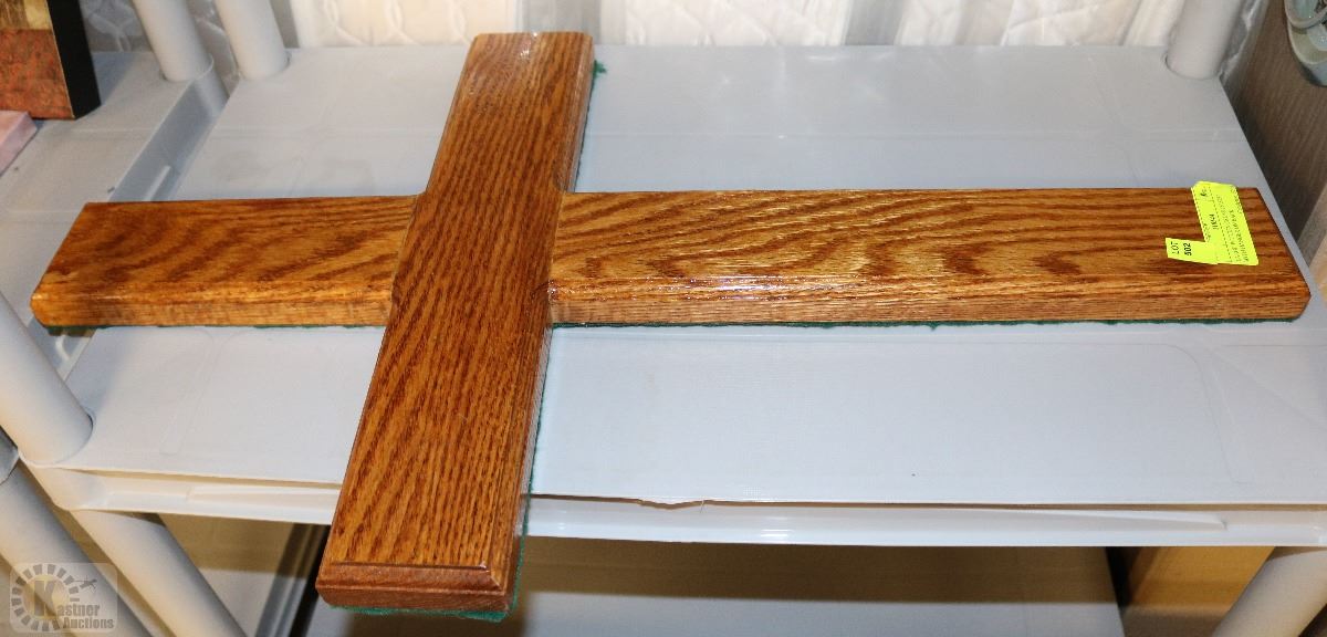 LARGE WOODEN CROSS 16"X28" WITH HANGER ON BACK