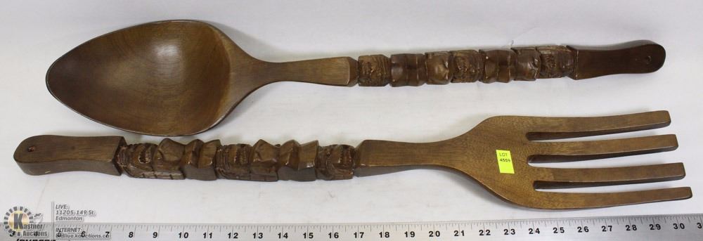 LARGE WOODEN DECORATIVE FORK AND SPOON