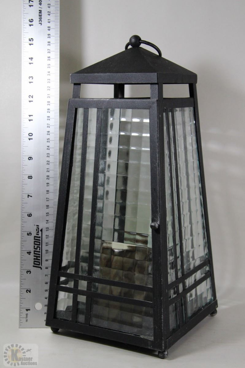 LARGE WROUGHT IRON OUTDOOR CANDLE LANTERN - 15"