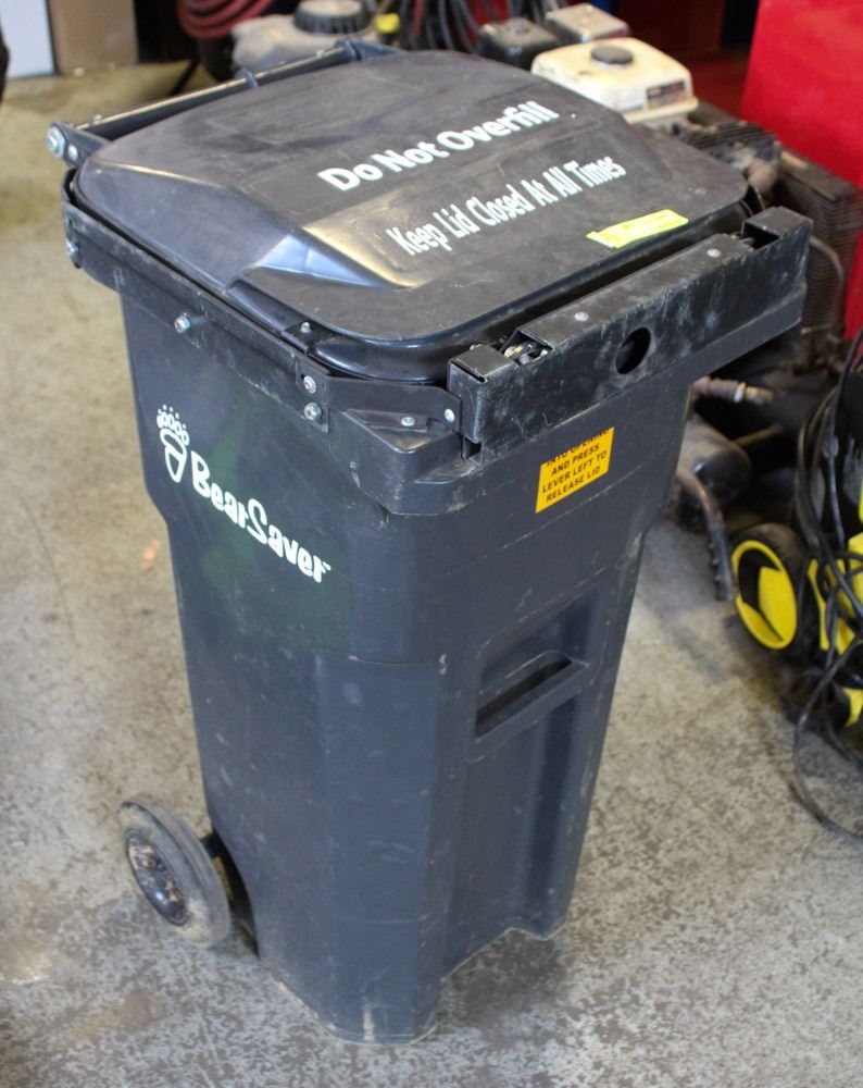LATCHING BEAR SAVER GARBAGE BIN ON WHEELS
