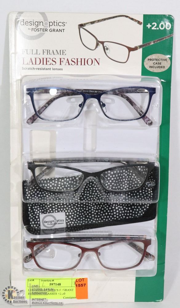 INCLUDES 3 DIFFERENT STYLE FRAMES. +2.00. EYEWEAR