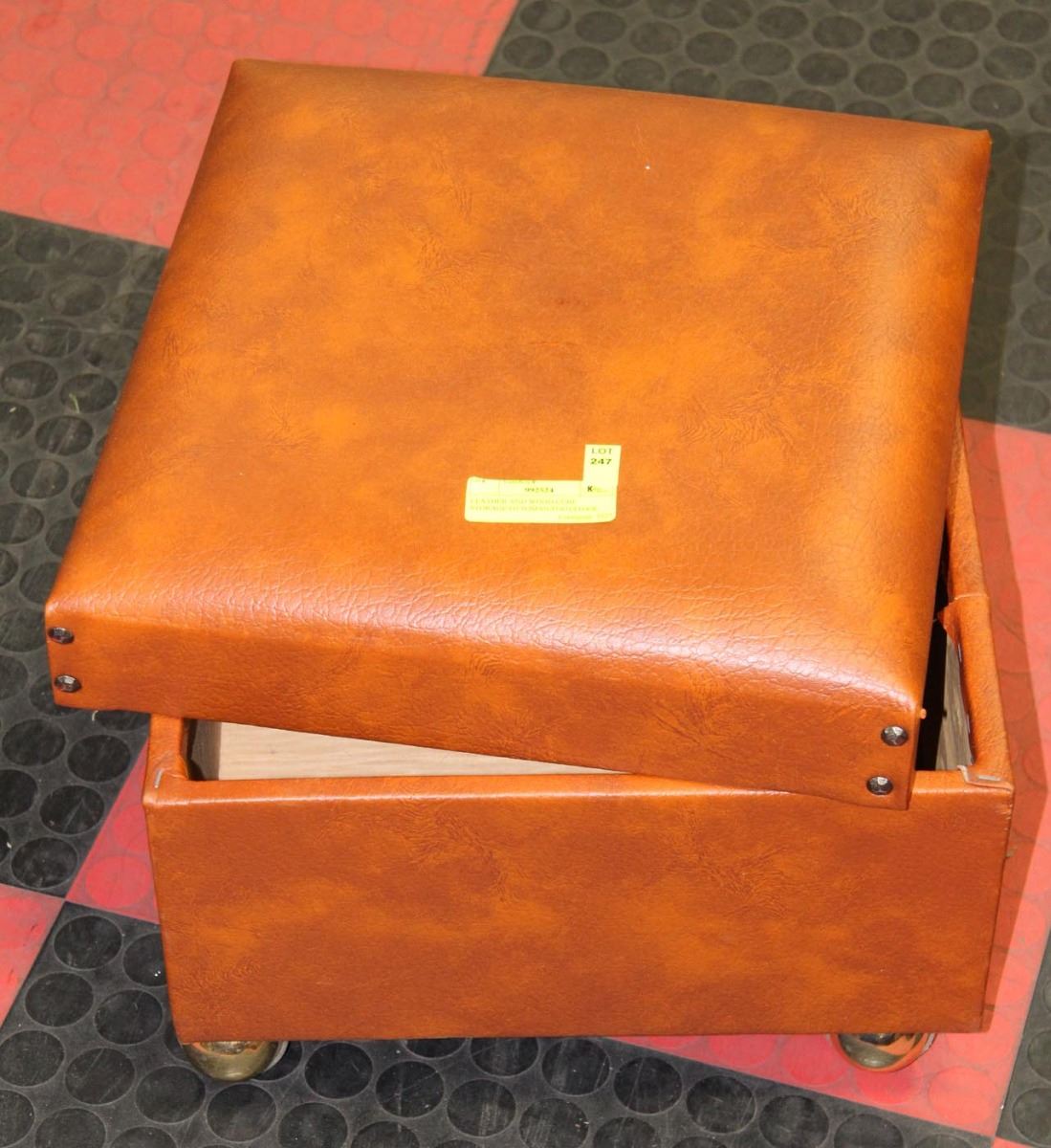 LEATHER AND WOOD CUBE STORAGE OTTOMAN/FOOTSTOOL