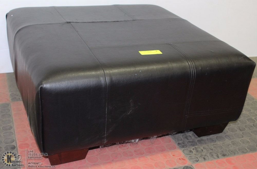 LEATHER BLACK OTTOMAN 26" X26"