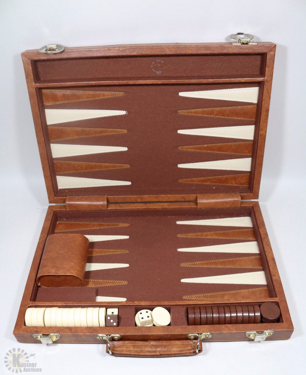 LEATHER CASE BACKGAMMON SET WITH ALL PIECES
