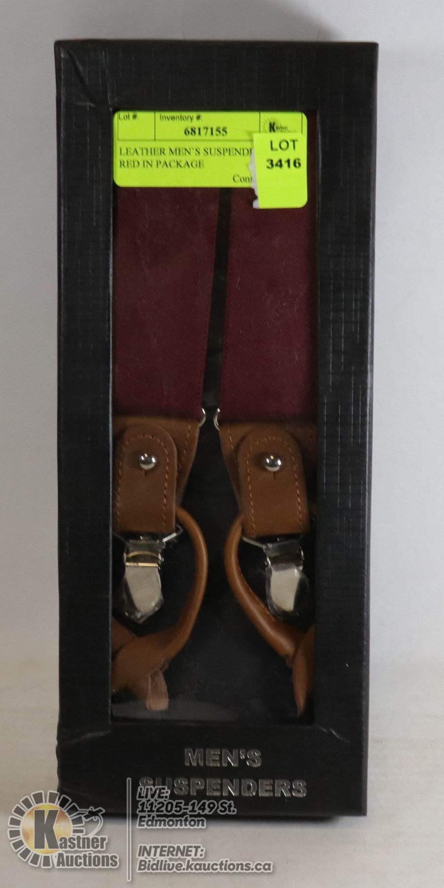 LEATHER MEN`S SUSPENDERS DARK RED IN PACKAGE
