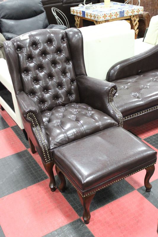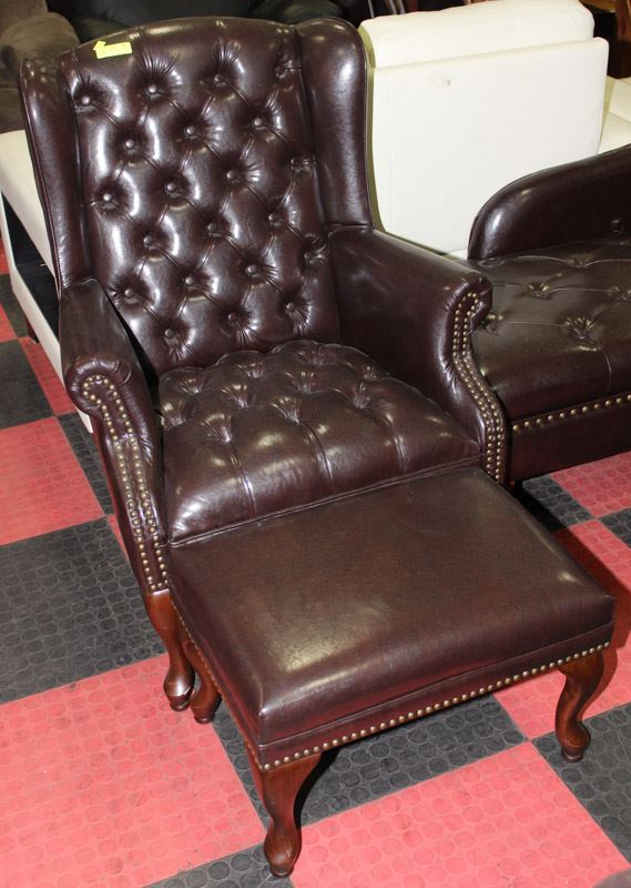 LEATHERETTE WINGBACK CHAIR & OTTOMAN