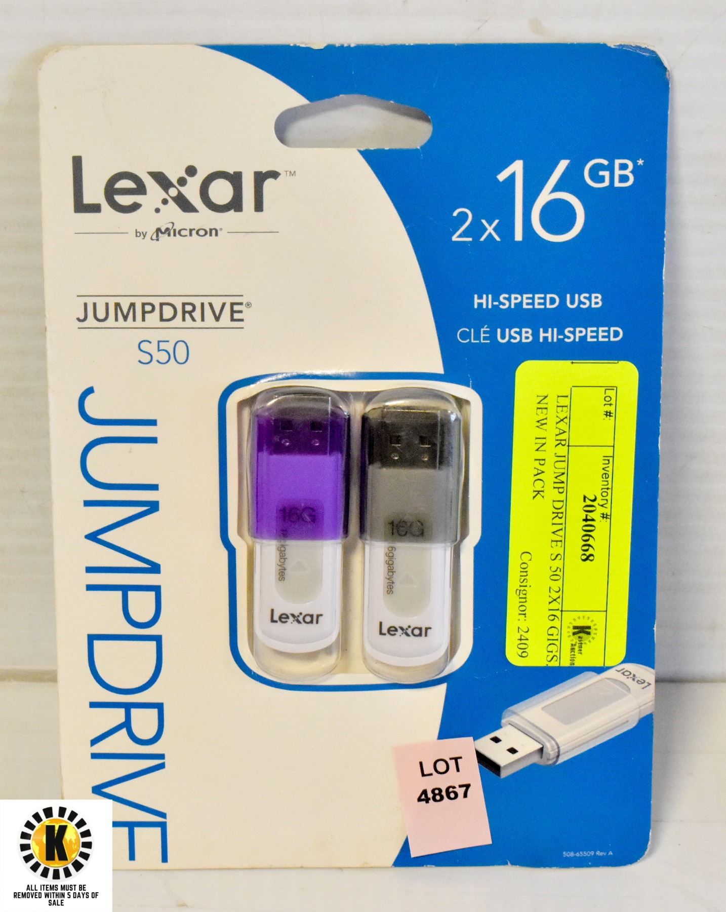 LEXAR JUMP DRIVE S 50 2X16 GIGS. NEW IN PACK