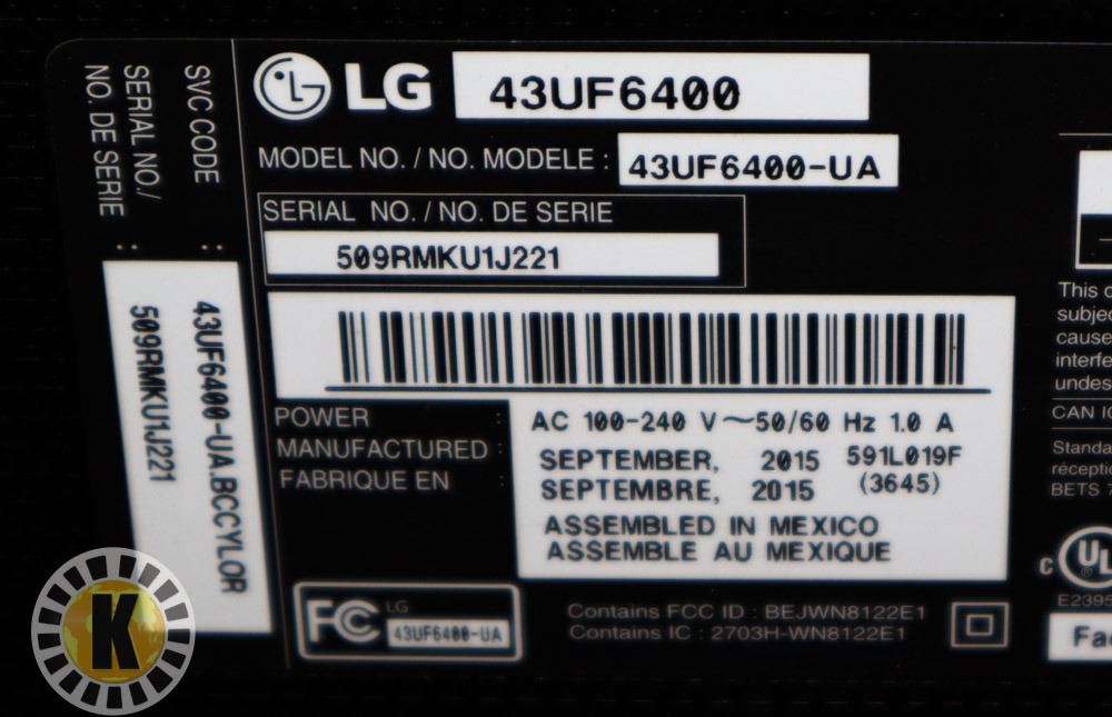 LG FLAT SCREEN TV- 43UF6400- NO STAND
