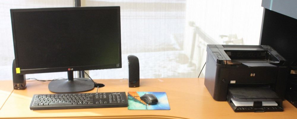LG MONITOR WITH KEYBOARD, MOUSE AND HP PRINTER