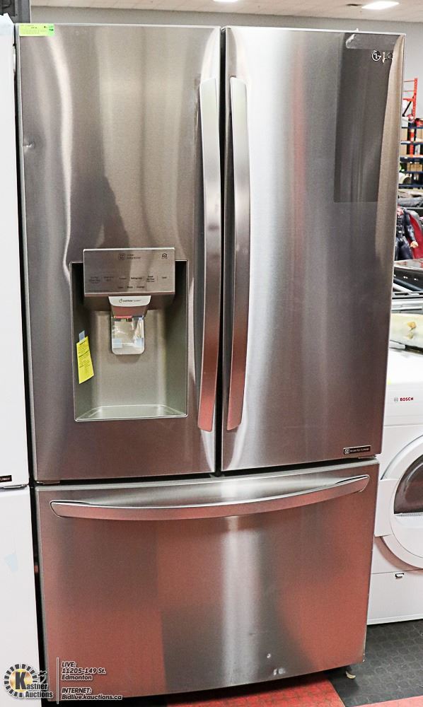 MAKER. MODEL NUMBER LFXS28968S. FRIDGE FEATURES 27.9 CU FT CAPACITY, SMART COOLING, SLIM SPACEPLUS ICE AND WATER SYSTEM, FRESH AIR FILTER, THINQ WIFI TECHNOLOGY, ENERGY STAR CERTIFIED, SMUDGE PROOF FINISH. DIMENSIONS ARE 35 3/4" X 39 3/4" X36 1/4". MSRP IS $3249.99. (ID#27). UNIT COMES WITH 7 DAY WARRANTY FROM THE DAY OF PICK UP. APPLIANCES. SCRATCH AND DENT.