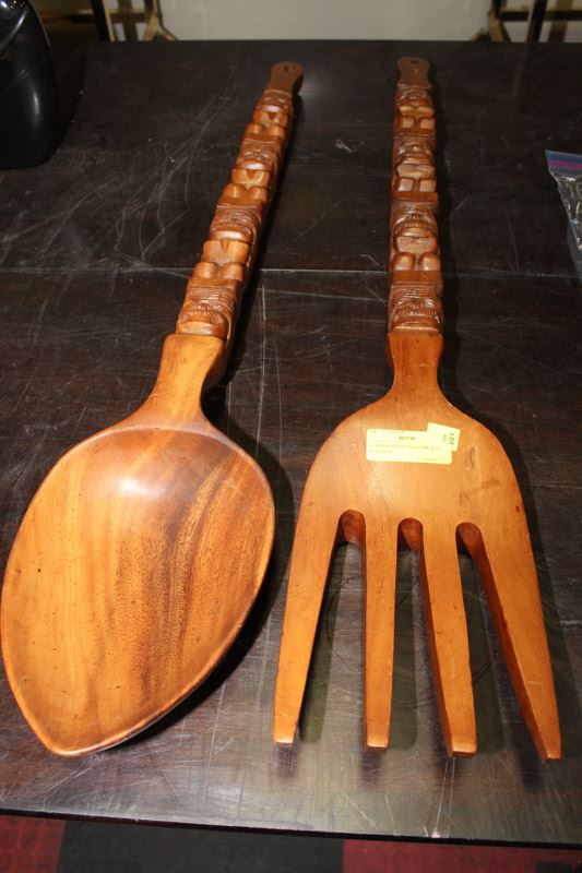 LG WOOD SPOON AND FORK WALL HANGINGS