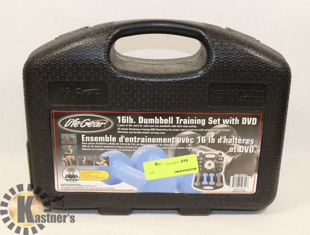 LIFEGEAR 16LB DUMBBELL TRAINING SET WITH DVD.