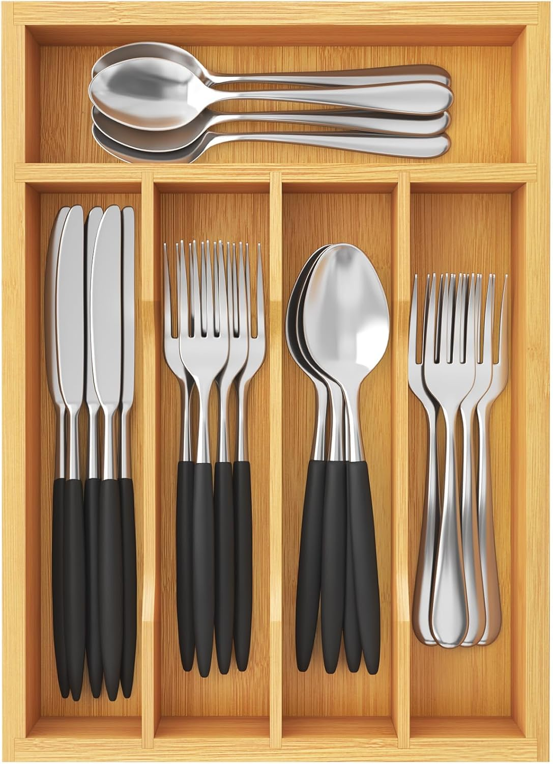 LIFEWIT BAMBOO DRAWER ORGANIZER TRAY, CUTLERY STORAGE FOR KITCHEN DRAWER
