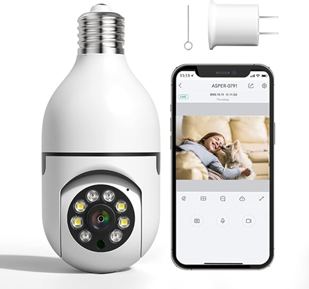 LIGHT BULB SECURITY CAMERAS WIRELESS INDOOR 355 DEGREE PAN/TILT 3MP CAMERA SURVEILLANCE WITH MOTION DETECTION ALARM NIGHT VISION TWO-WAY-TALK SUPPORTED 2.4GHZ WIFI (NOT COMPATIBLE 5G WIFI)