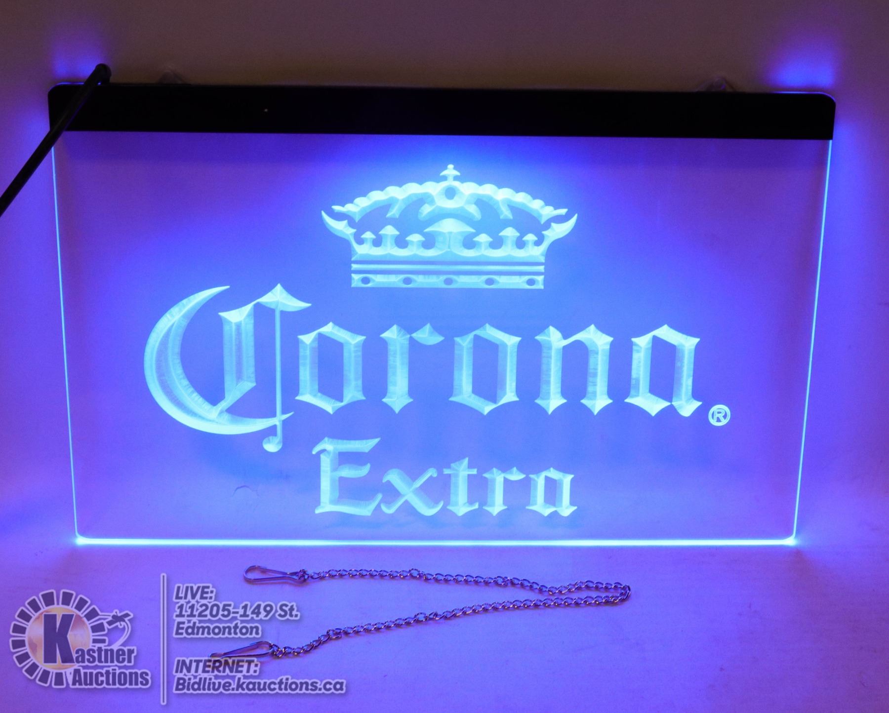 LIGHTED NEON BLUE "CORONA EXTRA" SIGN