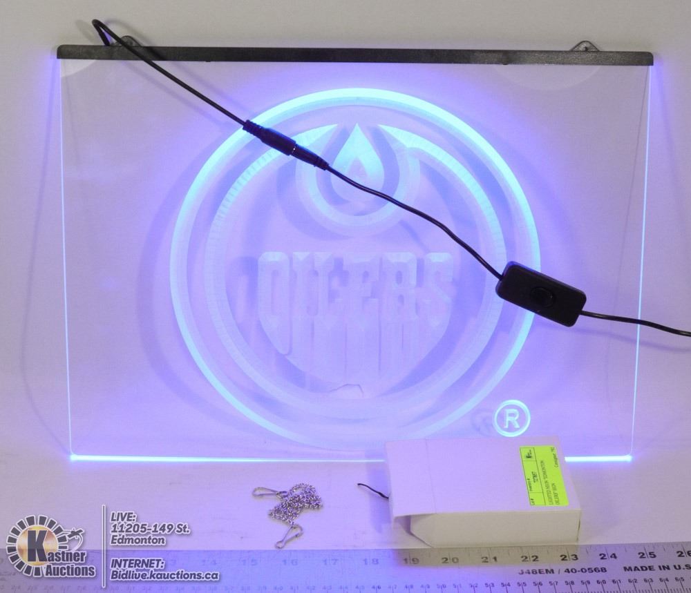 LIGHTED NEON "EDMONTON OILERS" SIGN