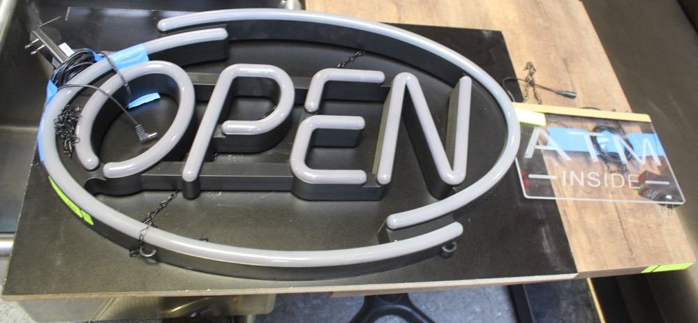 LIGHTED OPEN SIGN W/ REMOTE & "ATM INSIDE" SIGN
