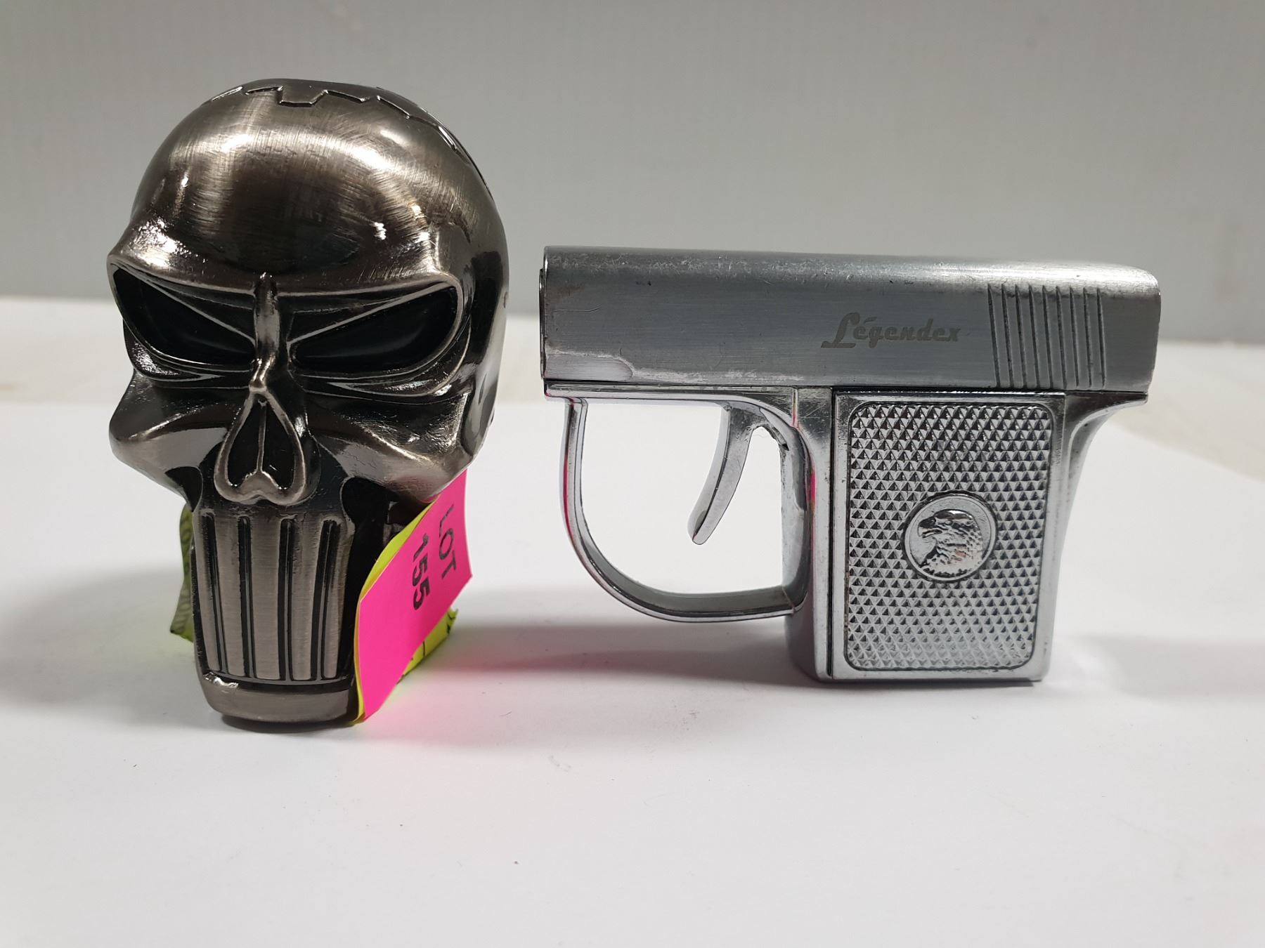 LIGHTER LOT 2 PIECES SKULL AND GUN