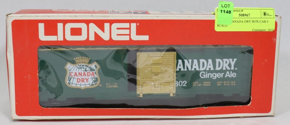 LIONEL CANADA DRY BOX CAR 0 SCALE.