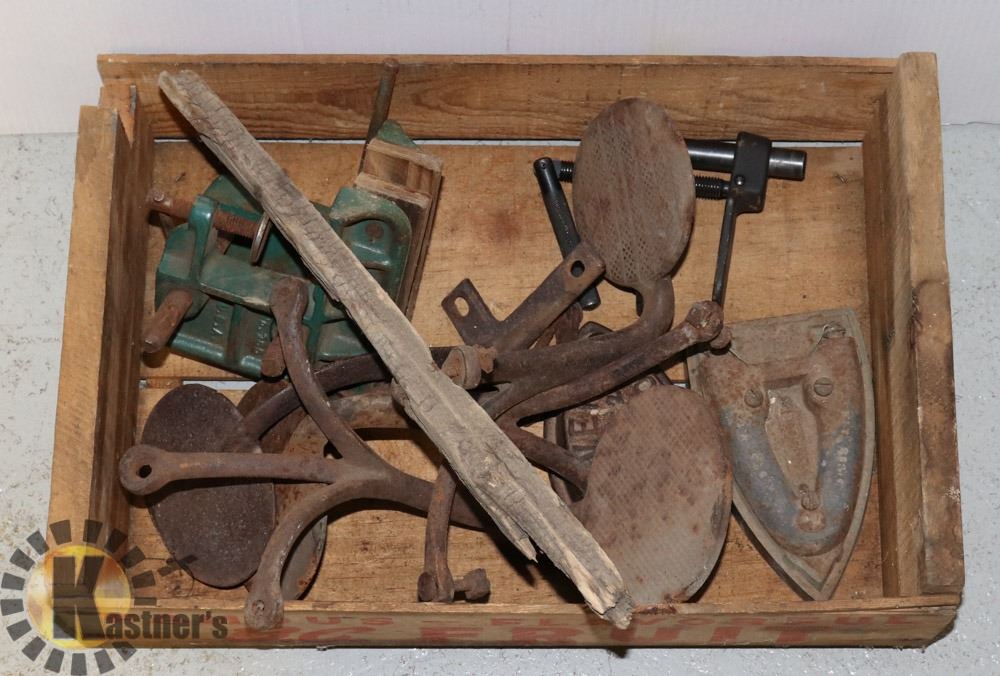 4 CARRIAGE/BUGGY STEP, BLACK CLAMP AND IRONS -DOVER SAD IRON