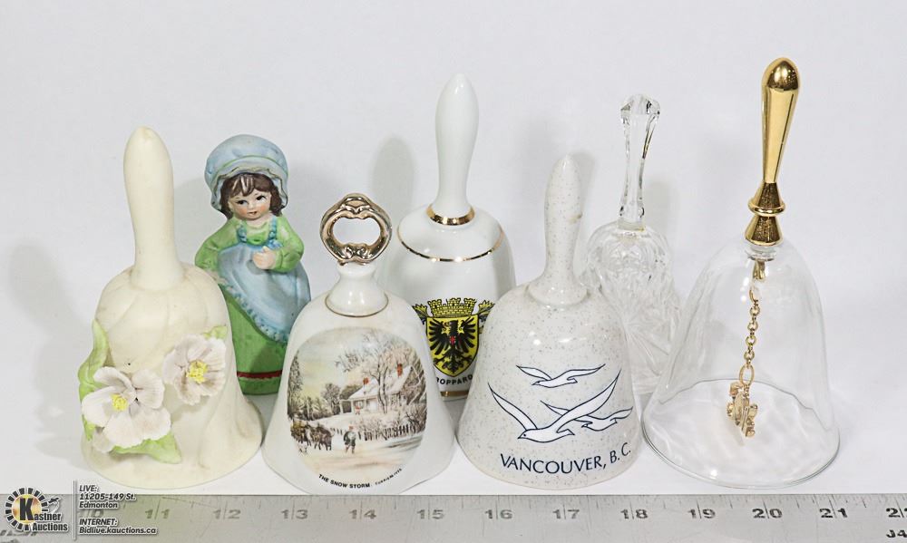 LO OF 7 BELLS CRYSTAL, PORCELIN & GLASS