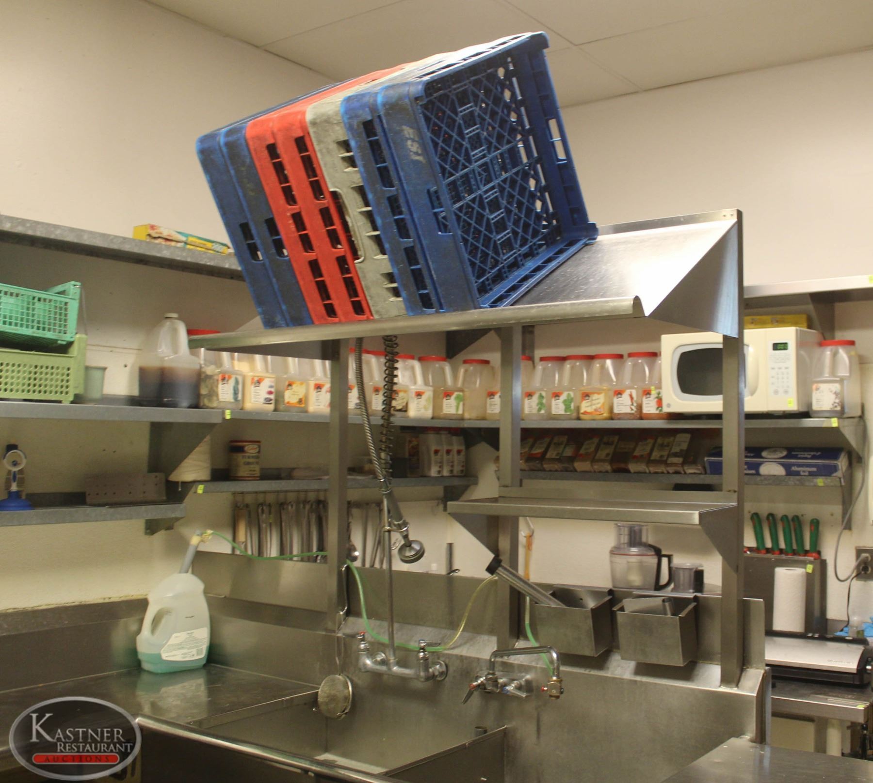 W/ 2 RUNOFFS INCL: L-SHAPED RUNOFF W/ 2 WELL SINK , FAUCET, PRE-RINSE, DISHWASHER RACK SHELF, OVER SHELF, & 11 DISHWASHER RACKS. 110V, 11.3 AMPS. DISHWASHER 32"X31"X66", LARGE RUNOFF 89"X61.5"X37" (82"H OVERALL INCL OVERSHELVES), SMALL RUNOFF36.5"X28"X37" W/ 8.5" BACKSPLASH BOOK YOUR PICKUP TIME AT WWW.KAUCTIONS.CA. PICKUP DATES ARE THURSDAY, APRIL 23 & FRIDAY,APRIL 24 FROM 9AM TO 5:30PM. PICK UP LOCATION FOR THIS ITEM IS 14981 - STONY PLAIN ROAD. ALL ITEMS MUST BE PICKED UP BY FRIDAY, APRIL 24TH AT 5:30PM **NO EXCEPTIONS
