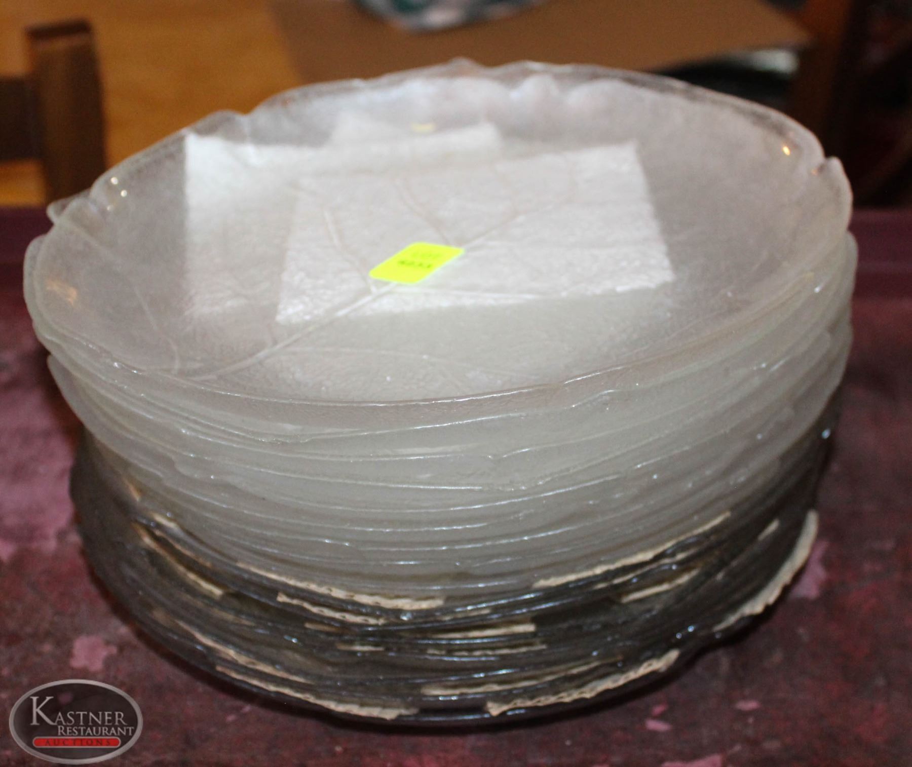 LOCATION #1. LOT OF 16 GLASS LEAF STYLE 9.25" SERVING PLATES