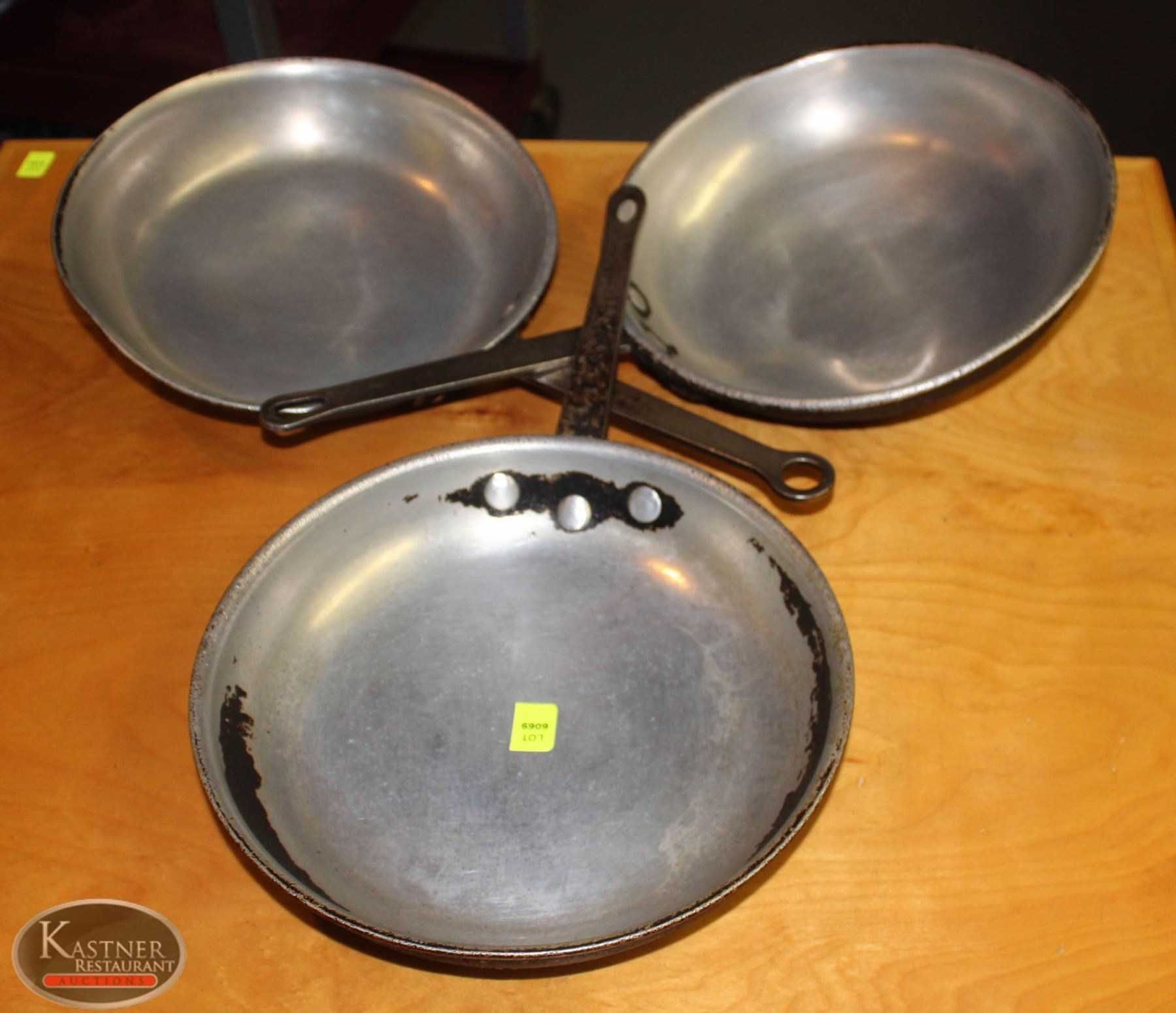 LOCATION #1. LOT OF 3 ALUMINUM 10" FRYING PANS