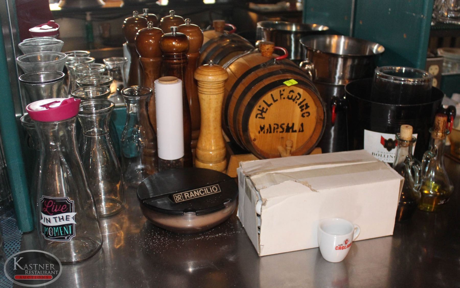 LOCATION #1. MINI KEG DISPLAY, ICE BUCKET, WINE CARAFFES,