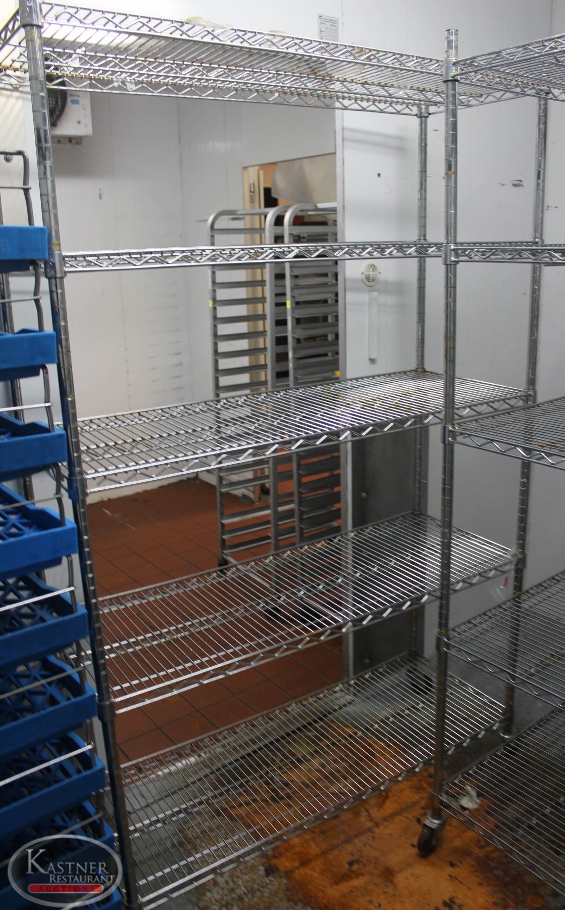 LOCATION #2. 5 TIER CHROME WIRE RACK ON CASTORS