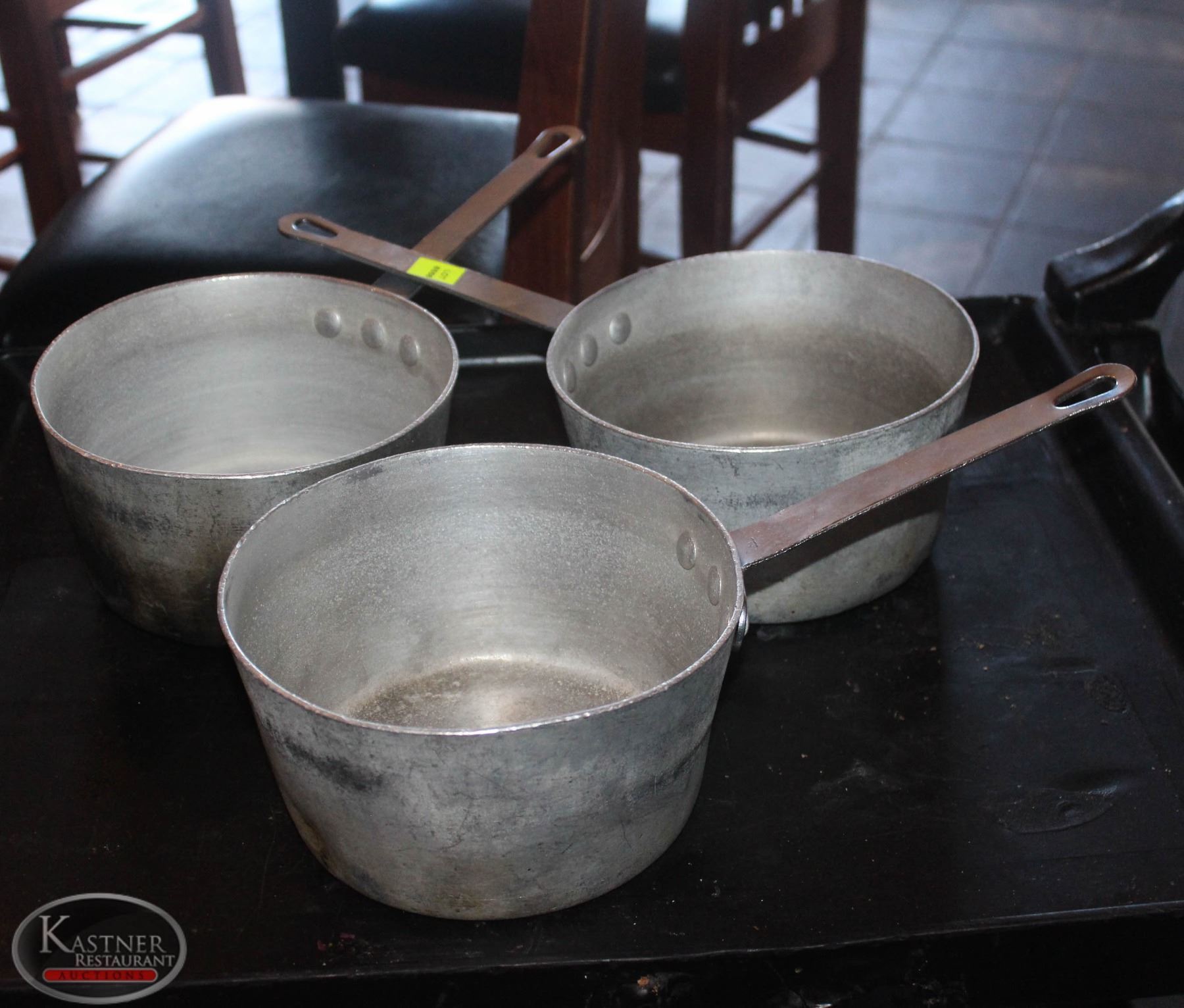 LOCATION #2. LOT OF 3 - 2.5 QUART ALUMINUM SAUCE PANS