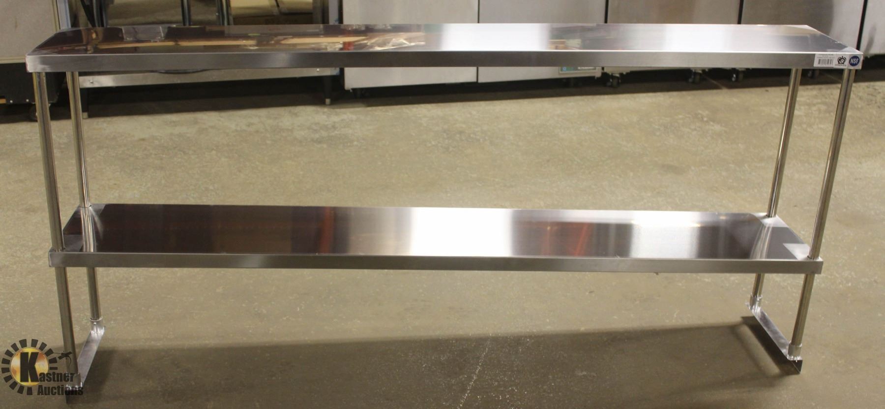 DD27 NEW JOHNSON ROSE 81274, TABLE-MOUNTED, 18 GAUGE 430 STAINLESS STEEL, 12" X 72", DOUBLE TIER, 31" STAINLESS STEEL LEGS AND SOCKET, EASILY ATTACHES TO WORKTABLES.BOOK YOUR PICKUP TIME AT WWW.KAUCTIONS.CA. THIS ITEM IS LOCATED AT OUR MAIN WAREHOUSE 11205 - 149 STREET