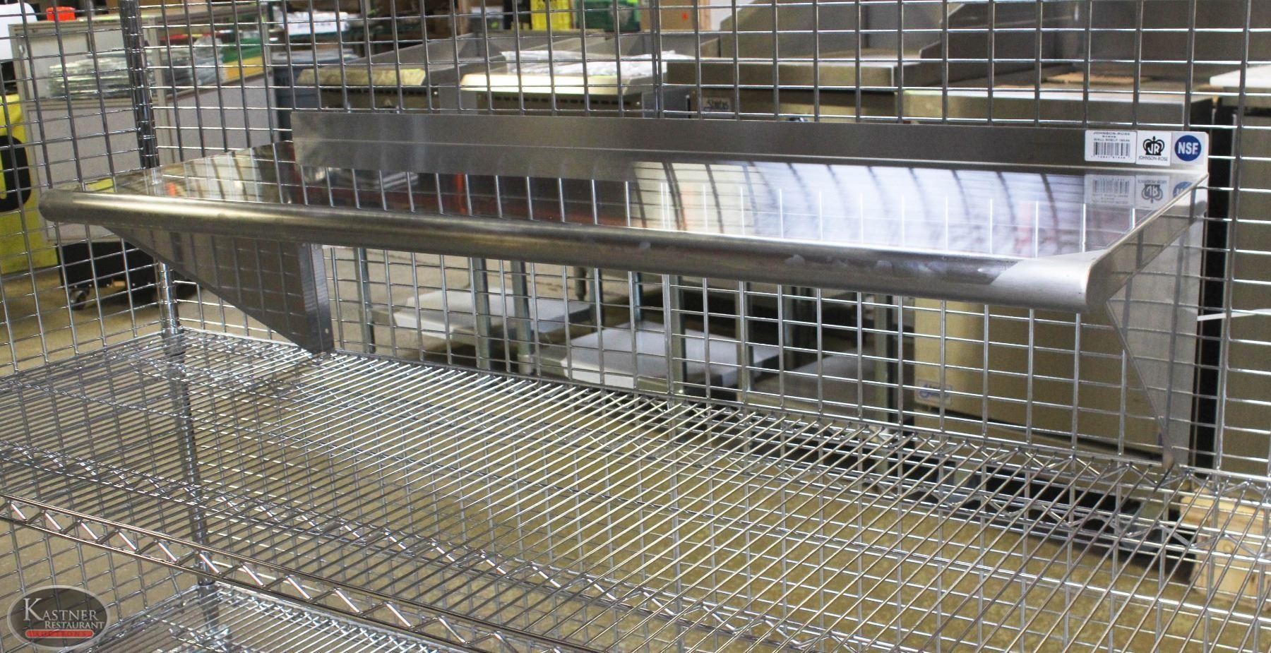 DD31 NEW JOHNSON ROSE 81648, WALL-MOUNTED, 18 GAUGE, 430 STAINLESS STEEL, 16"x 48", 1/2" UPTURN BACK, (2) 8-1/2" ANGLED SUPPORT, KEYHOLES FOR INSTALLATION. NSF