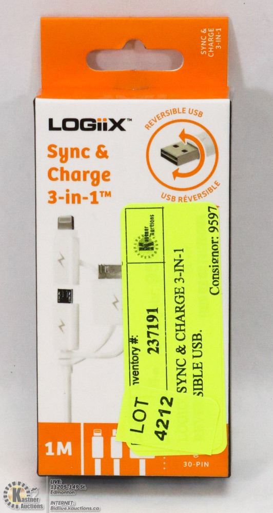 LOGIIX SYNC & CHARGE 3-IN-1 REVERSIBLE USB.