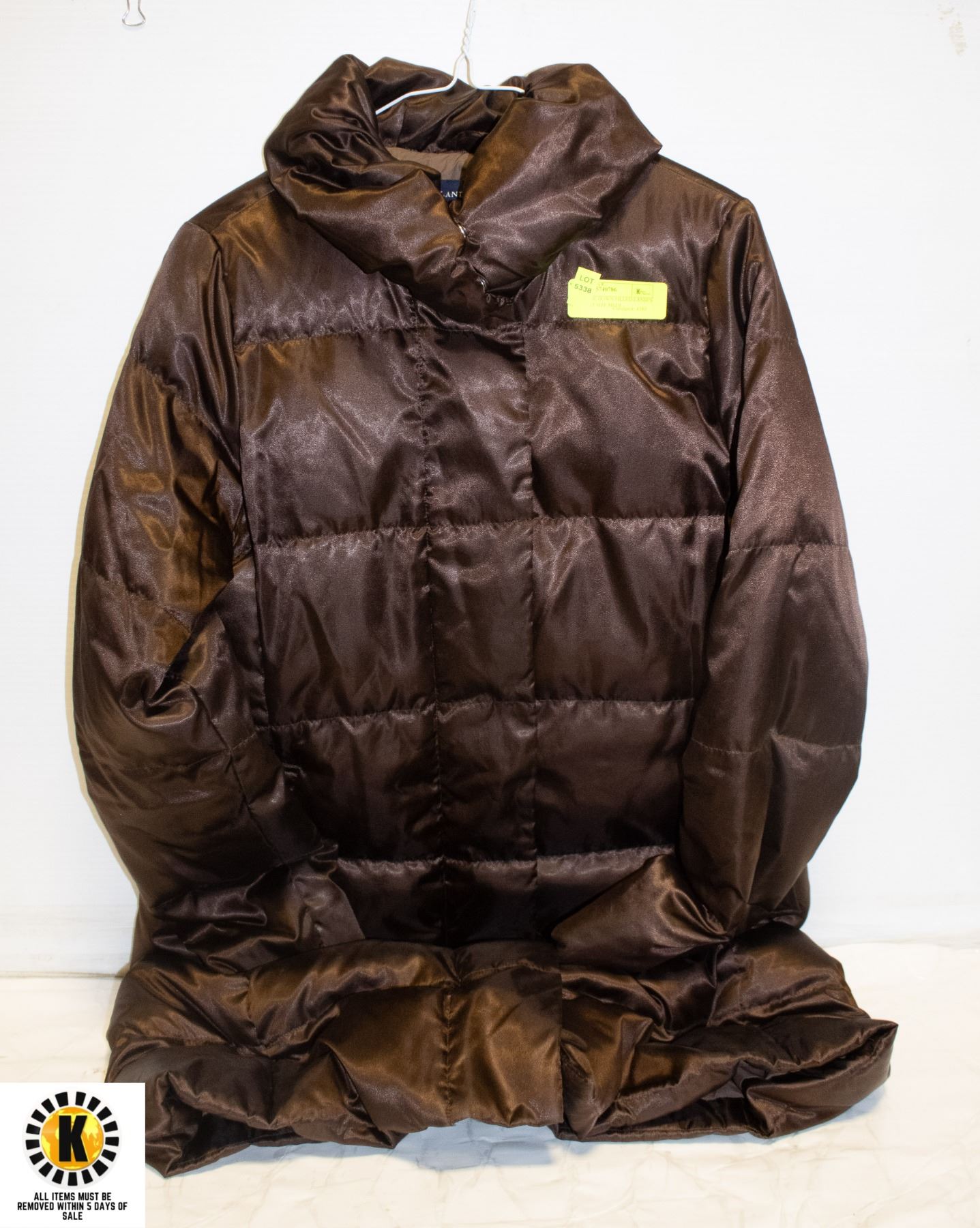 LONG GOOSE DOWN FILLED JACKET, CHOCOLATE BROWN, LAND?S END, SIZE MEDIUM