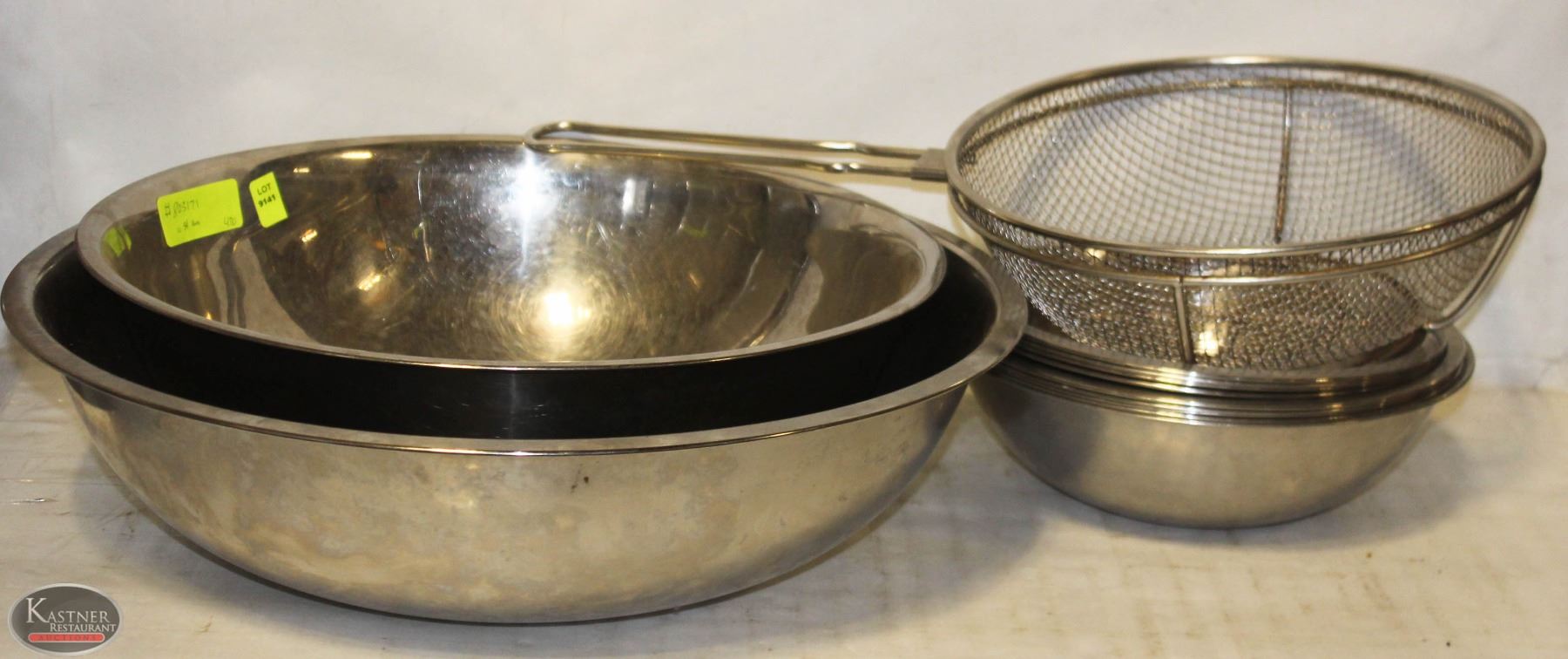 LOT OF 10 ASSORTED S/S MIXING BOWLS W/ STRAINER