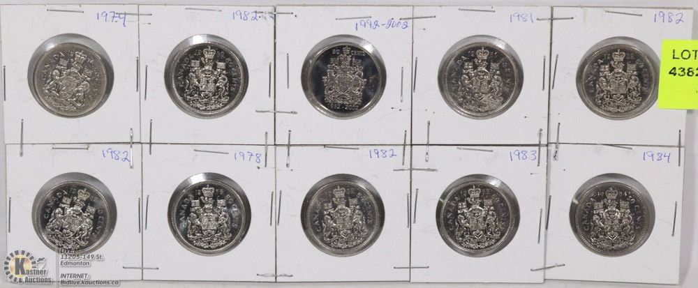 LOT OF 10 CANADIAN 50 CENT COINS 1974 - 1984